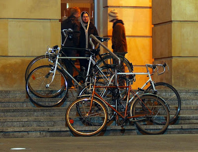 Teatr Wielki, w którym odbywają się główne wydarzenia corocznego festiwalu Camerimage, nie tylko pozbawiony jest większego parkingu samochodowego, ale i brak wokół niego stojaków na rowery. Dlatego odwiedzający go cykliści zostawiają swoje maszyny przypięte to wszelkich możliwych instalacji, z barierkami oraz okolicznymi latarniami włącznie.