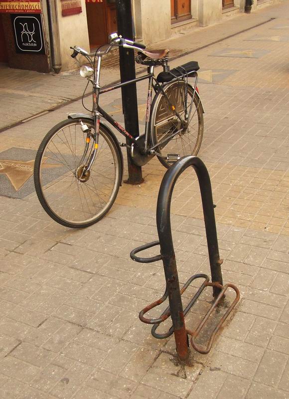 Nietypowy ich kształt wydaje się przekombinowany, bo z przykładów ze świata dobrze widać, że najlepsze są najprostsze formy. Uchwyt na koło wyraźnie nie zdaje egzaminu i mimo ewidentnego zużycia (parę takich stojaków nawet zniknęło) urzędnicy wciąż nie kwapią się z ich wymianą, pozwalając na tkwienie takich zardzewiałych osobliwości na reprezentacyjnej ulicy miasta.